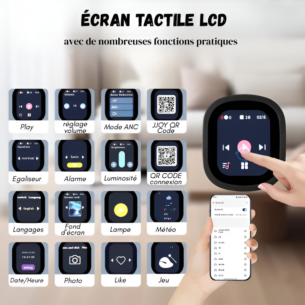 Découvrez le Touchhear, un casque audio innovant avec écran tactile magnétique. Gérez facilement vos appels, alarmes, et plus encore, tout en ayant la possibilité de prendre des photos et de personnaliser l’écran. Disponible en 18 langues et avec 3 fonds d'écran, le Touchhear est conçu pour répondre à tous vos besoins.